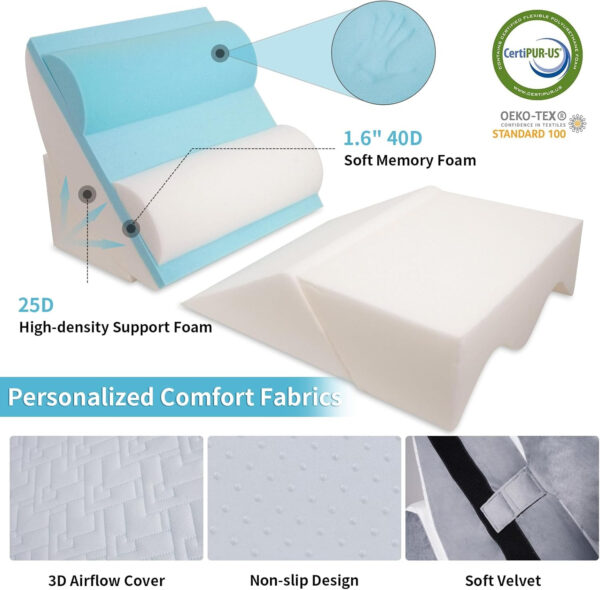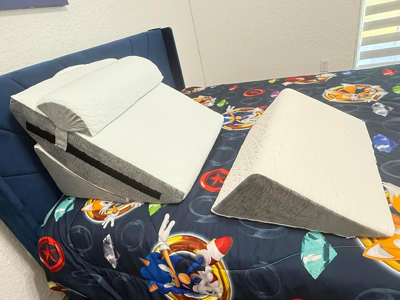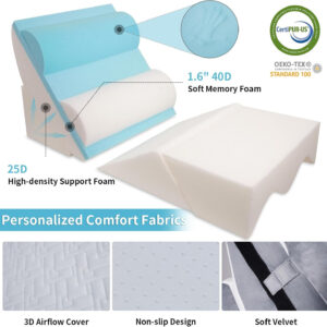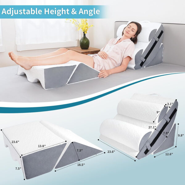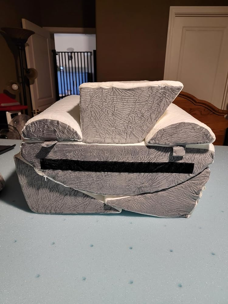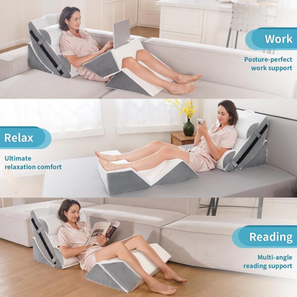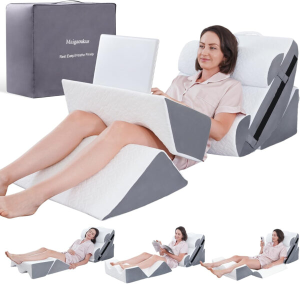 This is the second wedge pillow set I have used following surgery, and I found this set to be more complete than the first one I ordered in that the set came in a reusable vacuum sealed bag, and included a separate carrying bag to keep the set clean when not in use. The various pieces allow you to configure the most comfortable position for you, which would be most welcome by anyone undergoing surgery that then requires you to sleep in a semi-upright position whilst you recover. I had to deduct a star because I found the foam to be a bit too soft for my preference, but some people may prefer this. Although my first wedge pillow set was purchased several years ago, it was 50% more expensive than this set so this set offers good value for the money.
