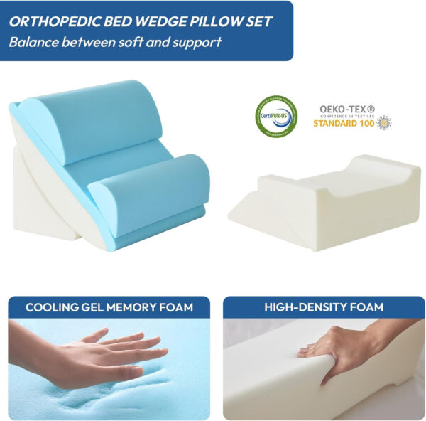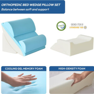This wedge has been a life saver after surgery. I don’t love the fabric it is pilling in just a few days of use, however the pillow is great.It’s comfortable with just enough firmness and memory. I had surgery and had to stay on my back for a week and sleep on my back for two weeks. I’m not a back sleeper. I was terrified I wouldn’t be able to sleep. I love this wedge. You can adjust the two pillows for head or lumbar support. Didn’t have a problem with slipping. You can remove or add one of the foot rest pieces to switch it up when you need to change your position for comfort. Good support for neck and back. I got my money worth plus some and most definitely would recommend. I wouldn’t have gotten through with the ability to sleep and be comfortable without it.