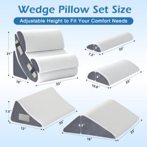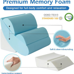 Lifesaver for my vacation. I have health and can’t lay flat. Tried propping pillows in the past and after awhile they end up squished down. This set is firm but comfortable and allowed a good nights sleep. Doesn’t shift while moving around, good support.