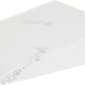 This Wedge pillow has provided me with a low cost, comfortable solution to morning back pain.We have a fairly new mattress with latex and memory foam top, it cost us $1400. Since buying this mattress over a year ago, I never wake up thinking “I’m so comfortable I just want to stay in bed”. Almost every morning, I wake up with pain just below the mid section of my back. I toss and turn all night, from my back, to my sides… I have two support pillows I’ve tried; one is a support to raise my knees when on my back and the other goes between the knees when on my side. Both are intended to help with back alignment; neither have provided any relief.When we bought our mattress I tried many options, laying on them for 15 minutes or more, multiple times; my wife was getting tired of how much time I was spending. Ultimately, I never found a mattress that I thought “that is the one!”. So, we picked one that felt “OK”. After a year of back pain, I pretty much hate my $1400 mattress now so I broke down and went to Sleep Number. The ability to adjust the firmness in a “Number” bed is a whole new game, I walked out of that store with the sense of what felt “right” for me; something I did not have the last time we bought a mattress.Now, telling my wife we need to replace our $1400 mattress with a $3000 “Number” mattress was like swallowing glass, it didn’t go down all that well. In the mean time, I tried this Bamboo memory foam wedge pillow and…I have slept through the night for the past 10 nights waking up without any back pain. I use this wedge with a low profile memory foam pillow which seems to work for me; I suspect the combination of what pillow to use or not to use with the wedge will be different for each person. I have several different pillows (profile and material types) and each one has a dramatic impact on comfort though out the night.Some additional details:I searched many wedge pillows, I chose this one for the moderate 7.5″ rise, memory foam layer, and bamboo topper. The rise is not extreme but relieves the pressure my bed applies, and as a bonus I suffer from post nasal drip at night which wakes me up choking; this wedge has also relieved that symptom. The memory foam top is subtle be noticeably adds comfort and the bamboo has a nice even temperature effect. The pillow had some off-gassing which after 10-days is almost gone; All memory foam does this and I can deal with it although off-gassing may bother some people more than others. If you can place a fan on pillow during the day it will help the smell dissipate quicker. These features combined with the price and prime delivery (I received it in one day in the North West) appeared to be the best option when I was shopping, the past 10 mornings without back pain have been wonderful.I still want a number bed but this $40 investment was well worth it!
