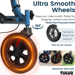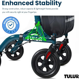 This just arrived and none too soon. Hubby took a bad fall last night (again) and I knew he would not be happy about me ordering a rollator but after I easily put it together and he finished glaring and grumbling, he walked around with it, sat in it, played around with the light, checked out the brakes (which are not as grippy as I had expected them to be, don’t hold real well when he turns around and sits down in the seat, and is my only disappointment so far), he seems a little bit happy about the stability it provides to him moving around the house. Now we can get out and get him walking again and go places where he doesn’t have to remain in the car. All in the course of an hour he has changed his mind about using it, is impressed with how stout it is made and how well he can get around corners. The light is a brilliant addition and will serve him well in the middle of the night.I’ll write more on this later as we are only hours into day one but my husband’s attitude changed when he actually started using the red Tulur Rollator Series 9210 even if it was just around the house. We’re off to a promising start.I’ve done a lot of research on rollators and have found, personally, the value for the money is priceless. This seems like a very sturdy and stable rollator which was my most important criteria. It does not tip over as that was the first thing he tried to get it to do. Its light weight enough that I can fold it up and put it in the back of my SUV with ease, another of my criteria when I was looking. For day one, I am blissfully happy with my purchase!