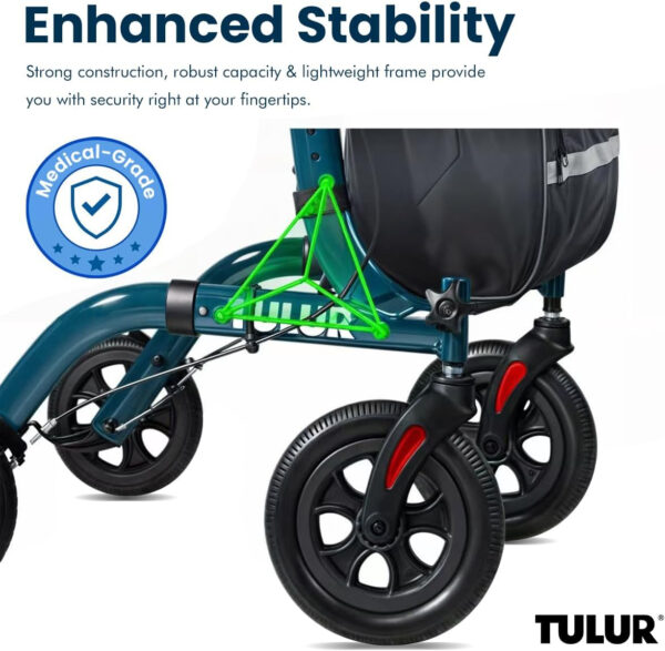 As a Homecare nurse ive seen alot of rolling walkers. I bought this for myself to do my outside horse chores after a bad knee injury, im 57 yrs oldI love this thing! The seat is narrow so you can get up and in the walker and close to things you may need to reach on a counter top etc. I wouldn’t recommend this for inside the house as its overkill but for outdoors its amazing! Ha, I love it.