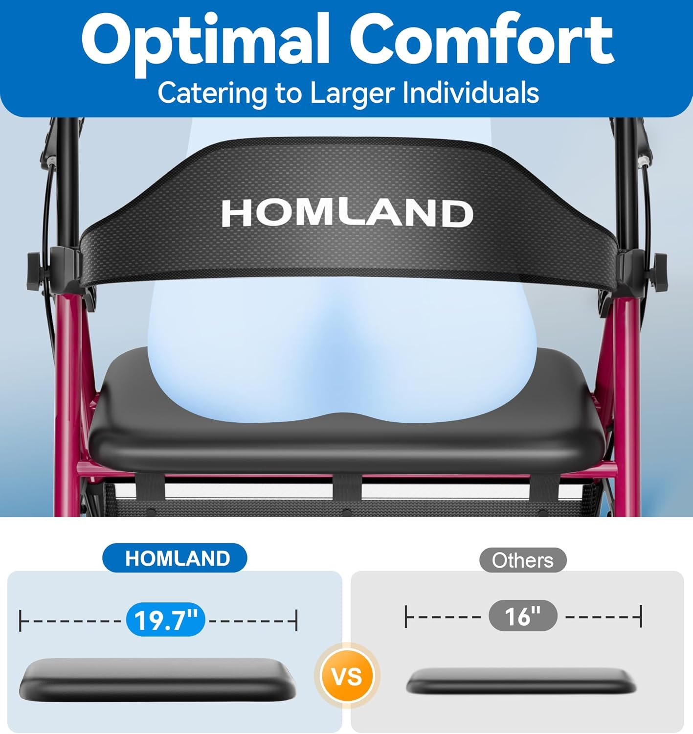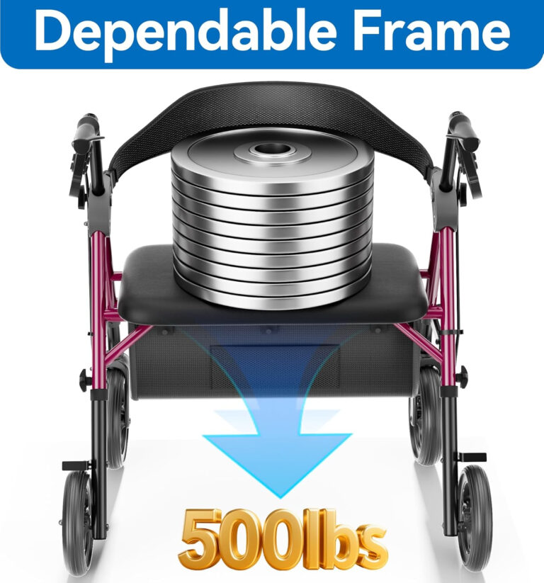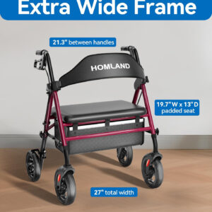 3 reviews for Bariatric Walkers for Seniors, 500lb Heavy Duty Rollator Walker with Extra Wide Padded Seat, 8” All Terrain Foldable Rolling Walker with Dual-Height Adjustable