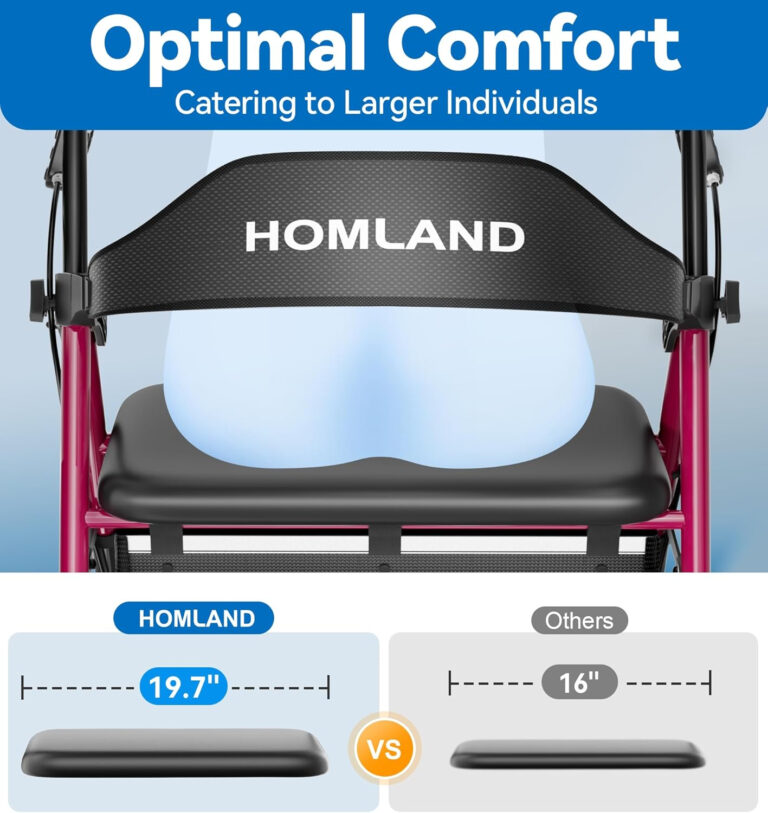It is a nice quality rollator but I have lymphadema in my upper thighs and it pinches me really bad when I sit down. It said it was as big as the loaner when I measured but it isn’t. A the extra 1.5 inches would make it comfortable to sit in. Now I am stuck with it and can’t sit long enough to cook or do dishes. I am disabled and can’t get it anywhere to return it. It took me a long time to put together. It wasn’t hard just hard on my body to do it. I hate that I soent too much money and ended up with something I can’t use.