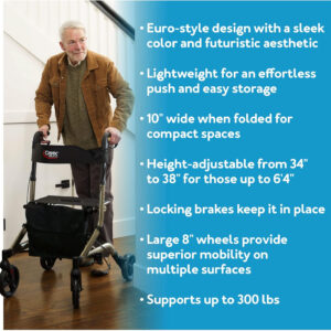 3 reviews for Carex Crosstour Rolling Walker Rollator – Rolling Walker with Seat – Folding, Euro Style Rollator, 4 Wheel Walker for Seniors- 300lb Capacity, Walker with Seat for Seniors
