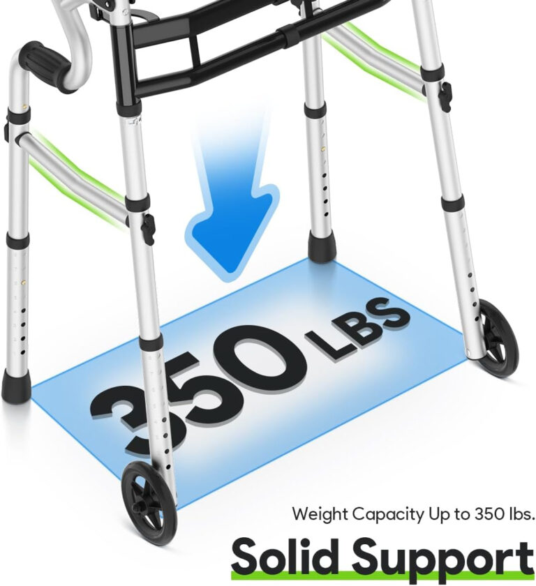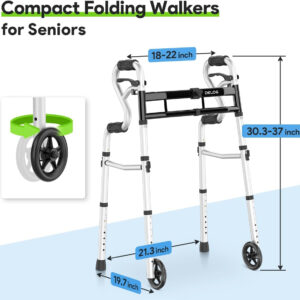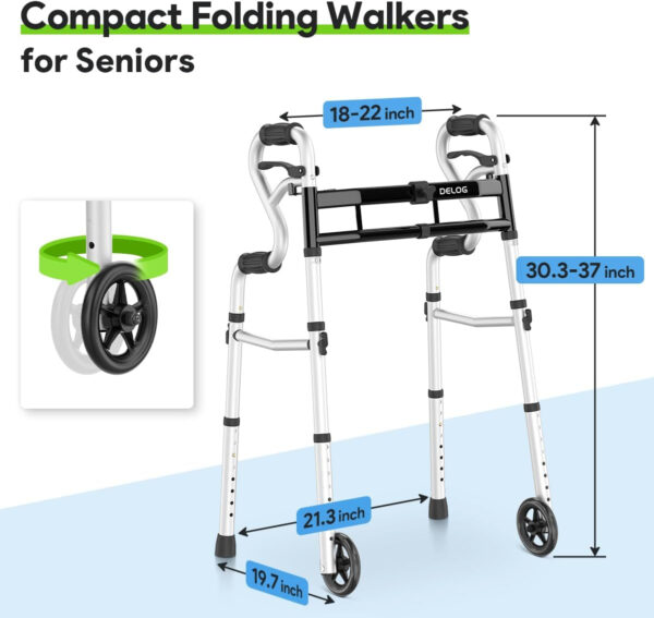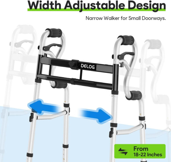 3 reviews for Delog Narrow Folding Walker for Seniors, 3 in 1 Folding Walker with 5” Front Wheels Width Adjustable Compact Standard Walker Support Up to 350lbs