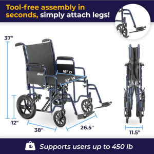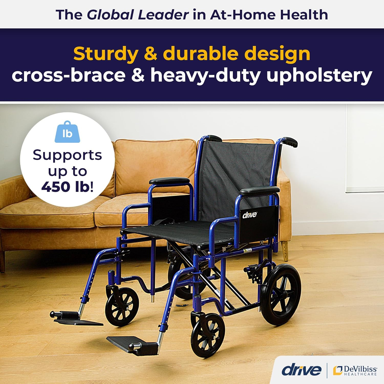 3 reviews for Drive Medical BTR22-B Bariatric Heavy Duty Transport Wheelchair, Blue