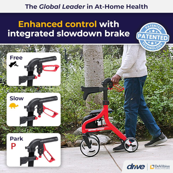 6 reviews for Drive Medical Nitro Sprint Foldable Rollator Walker with Seat, Standard Height Lightweight Large Wheels, Folding Rolling Walker, Red 1 Count 19 pounds