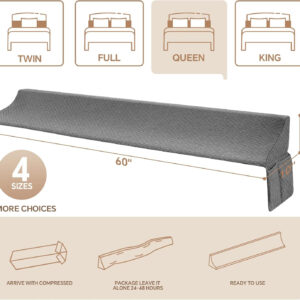 I recently received the EUHAMS Bed Wedge Pillow for my King Size Bed. I don’t have a gap between my mattress and headboard EXCEPT that sometimes my top mattress slides away from the headboard when other pillows sink in between. I’m constantly pulling pillows out of the gap and pushing my heavy mattress back into place.The wedge pillow arrives compressed but after 24 hours seemed to be fully fluffed up. There was no noticeable smell which is nice. There were some wrinkles in the cover but once I positioned the pillow on my bed and ran my hands over it a few times they seemed to work themselves out.PROS:- Pillow has a zippered cover, so it can be easily removed and washed.- Pillow fit my standard sized king bed perfectly.- Pillow seems to stay in place well.- So far, the pillow has solved my issue of pillows sliding down between the headboard and mattress, which in turn has helped prevent gaps from forming. Woo Hoo!- I thought the side pockets for holding remote controls would look tacky (I had planned to tuck them under the pillow and not use them) but … they are actually a super convenient feature so I’m counting this as a bonus.CONS:- I wish the pillow cover came in more color options so I could match it better with my headboard and general decor. However that’s an issue ALL wedge pillow makers seem to have. This pillow has a low profile that I’m hoping I can keep it hidden from view under covers and/or pillows.Overall, the product I received matches the product description and solves the gap issue quite well. Functionally, just great. I am docking the 1 star due to the lack of color options.