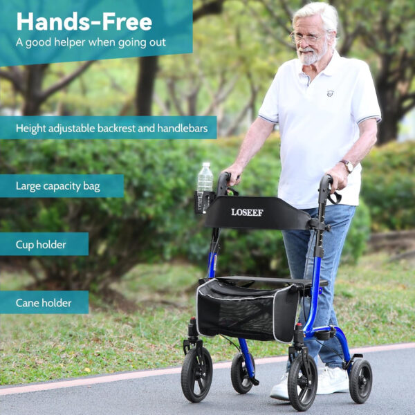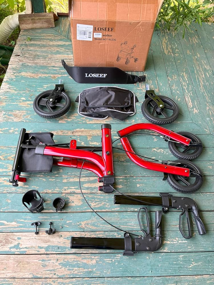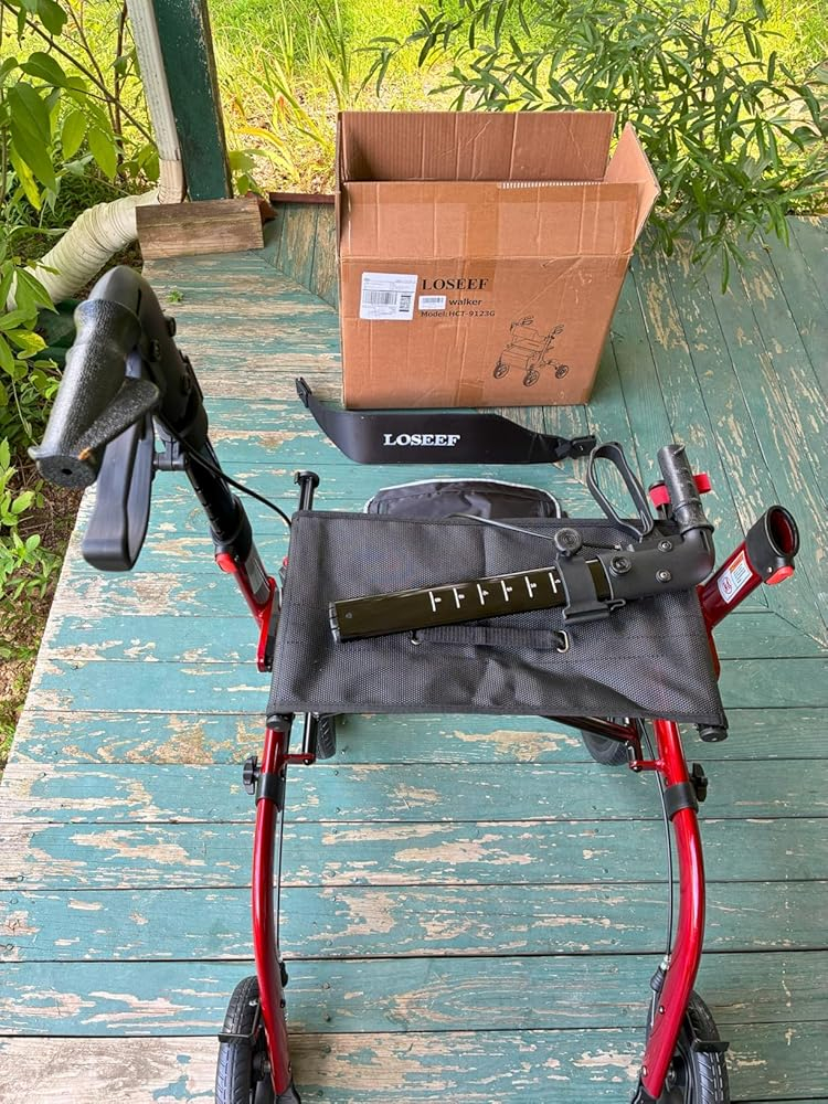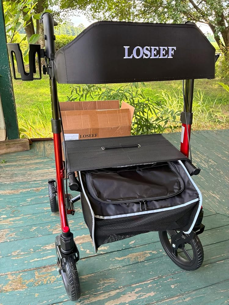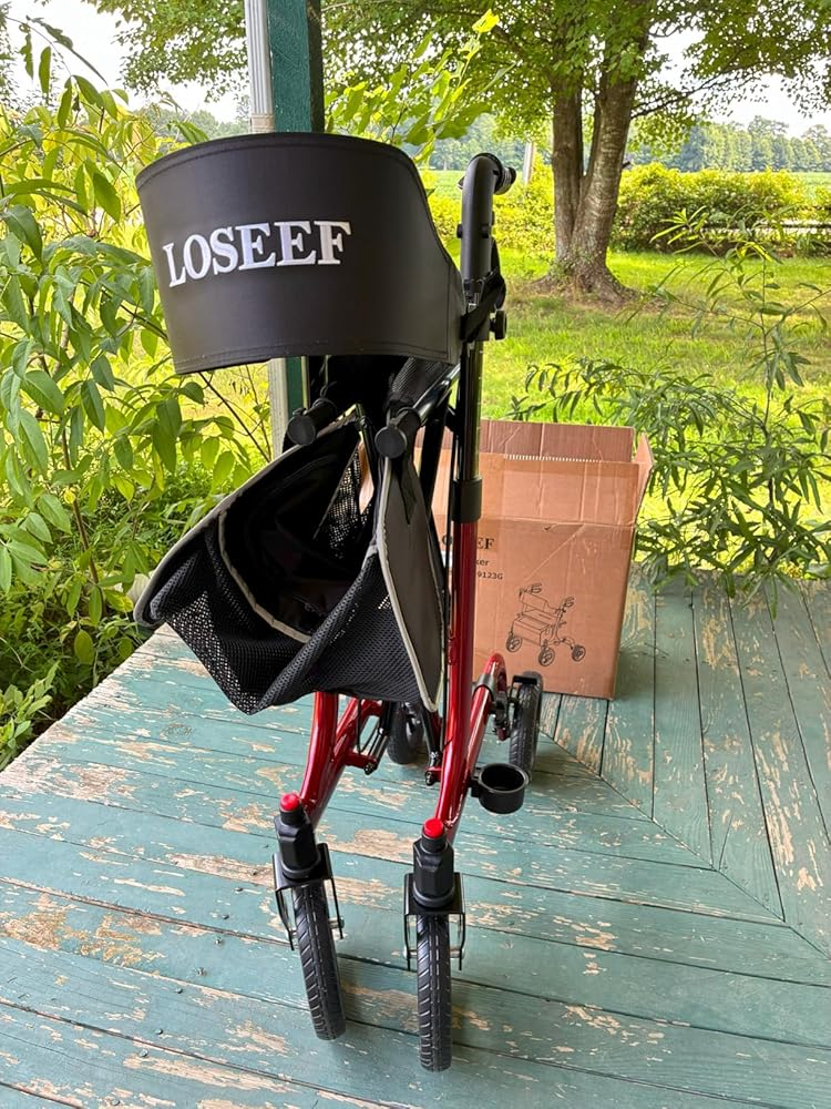 When I considered this foldable rollator walker, my expectation was a sturdy, reliable aid that would significantly enhance mobility for a senior user, providing both support for walking and a convenient seat for resting. I envisioned a lightweight yet strong frame, large wheels capable of handling various terrains, and easy portability for trips in the car. The features like adjustable handles and backrest, sensitive brakes, and included accessories all contributed to my hope for a comfortable, versatile, and high-quality mobility solution that would truly foster independence. The reality of this rollator largely met these high expectations, proving to be a very capable and well-designed aid, though with one minor point.It was primarily used this rollator for daily walks around the neighborhood, on paved sidewalks and some grassy areas, as well as for short trips to the store. Assembly was straightforward, taking only about ten minutes, which was a relief. The large 10-inch front and 8-inch rear rubber wheels truly lived up to their “all terrain” promise, gliding smoothly over cracks in the pavement and even some uneven grass without issue. The adjustable handles allowed for a comfortable, ergonomic grip, and the backrest was easy to set to a supportive height when sitting. The seat itself was comfortable for short rests, and the dual brakes were responsive and secure, locking firmly when needed. Folding it up was incredibly simple, making it easy to lift into a car trunk for travel. The cup holder and large storage bag were surprisingly useful additions, keeping essentials within easy reach.This foldable rollator walker is an excellent choice for seniors or anyone needing mobility assistance who values independence and convenience. Its robust capacity and all-terrain wheels make it suitable for both indoor and outdoor use. It’s ideal for individuals who need a reliable way to walk longer distances, have a quick rest when needed, and transport personal items. The easy folding mechanism makes it perfect for those who travel frequently or have limited storage space at home.The rollator arrived securely packaged, with all its parts protected. The red color is vibrant and appealing, and the metal frame felt very sturdy and well constructed. All components were in perfect condition. As for giftability, this would be an incredibly thoughtful and practical gift for a senior family member or friend who needs assistance with mobility. Its combination of stability, comfort, and portability makes it a valuable aid that genuinely enhances quality of life.My purchase of the LOSEEF Foldable Rollator Walker was well worth it, earning it a 5 out of 5 stars. It delivered on nearly all its promises, providing excellent stability, smooth mobility, and user-friendly features that significantly enhance independence. No major mistakes were made in its design or functionality. The only minor point was the prominent “LOSEEF” branding on the backrest, which, while purely aesthetic, was a bit larger than I prefer. However, this small detail does not detract from the rollator’s overall excellent performance and value.