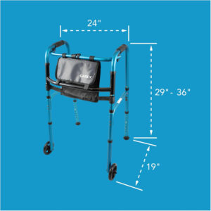 Excellent walker with a good look that is better than the gray industrial tubing of the standard walker. This walker may be a couple of inches less wide than the average walker but that worked well for my husband. Also, he is very happy with the attached slim bagged pockets for his glasses, etc. Lastly, this walker cost about half the price of the standard walker at a medical supply pharmacy and is much nicer (includes ski tips on back legs)..