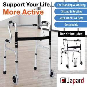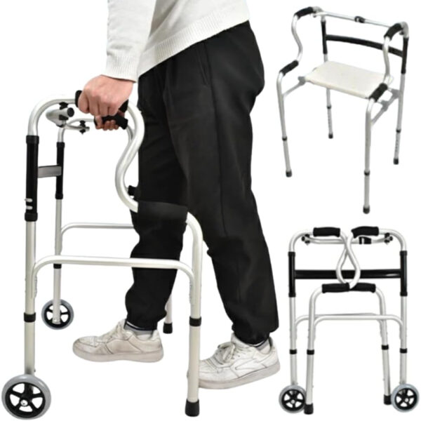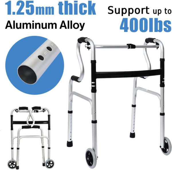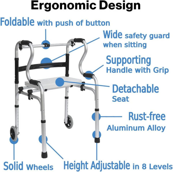 I bought this walker for a family member to use during a multi-day event so he could participate in activities (he normally uses a cane) and sit down when he needed to. He had never used a walker before, so I chose this one because of the simplicity – the sturdiness claims (supporting 390 lbs – although it says 400 lbs in another place in the description), it was lightweight (5.5-8.2 lbs), adjustable height, folded easily, had a seat, optional 2 front wheels and additional lower-level arms to make standing up from a seated position easier. Since we would be in and out of vehicles and likely carpooling, it needed to be compact and easily set up. I did have questions about how the seat attached, and if the walker could be folded without removing the seat, and how to lock and unlock the frame in place. I didn’t know what a “reciprocal” option was, but I assumed it had instructions or at least would be intuitive to assemble and use. There were no customer reviews, which concerned me, but it had all the features I was looking for and I couldn’t find them all in another walker, so I took a chance.The walker was indeed as described and seems very sturdy. I was impressed right away until I realized the multi-page pamphlet that came with it was only in Chinese, small print at that and I couldn’t figure out the answers to my questions from the tiny pictures. I contacted the seller, who contacted the supplier, who was going to have an English translation available “in a week or so”. It has been a week and a half with no English instructions yet, and the family event is over. We ended up not using it because of the uncertainty of the seat assembly, locking/unlocking mechanism and safety precautions that we would have had to just guess about. However, I do plan to keep the walker and look forward to useful instructions for future needs. Hopefully, they will be posted on the product site soon. And maybe even an instructional video!Update: Just received an email from the seller with attachment of very helpful manual in English. Changing rating to 5 stars.