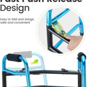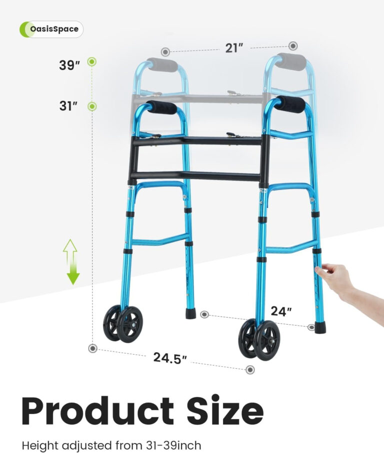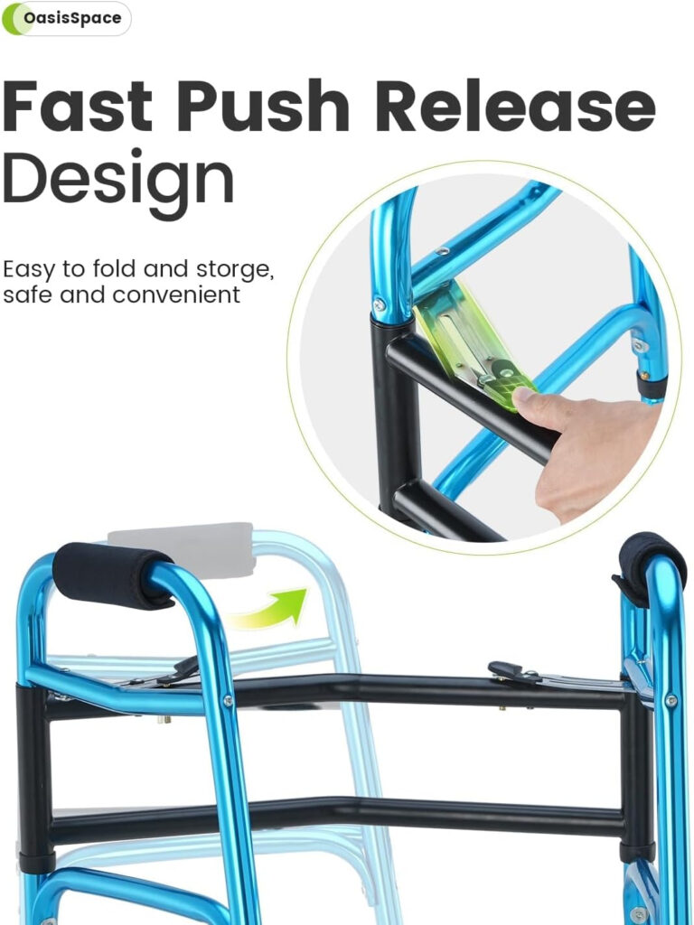 Great walker very sturdy. I’m 6’2″ and weigh 235. No problem for this walker. I get a lot of people asking where I got it because of the blue color. People really seem to like that. I’ve read that some of these have problems with the screws. Mine came in perfect condition. I think they may have changed the way they packaged these. Highly recommended
