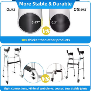 Very happy with this walker. A little wider than most but still fits through my doorways and the lower handles have helped me in various situations. Lightweight yet sturdy.