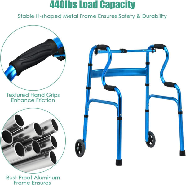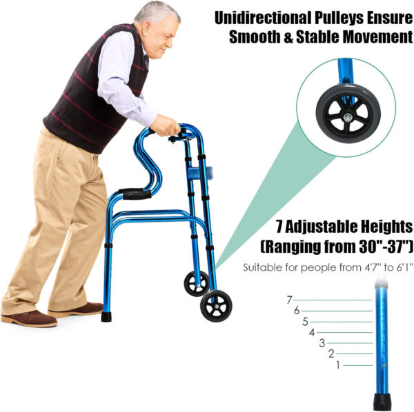 Extremely happy with this walker. Nice grippy handles and light weight yet sturdy. The blue color is beautiful.Folds nicely and quickly.
