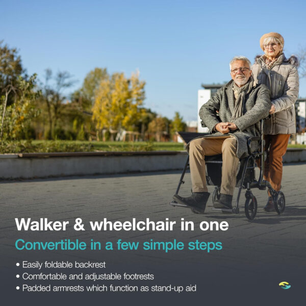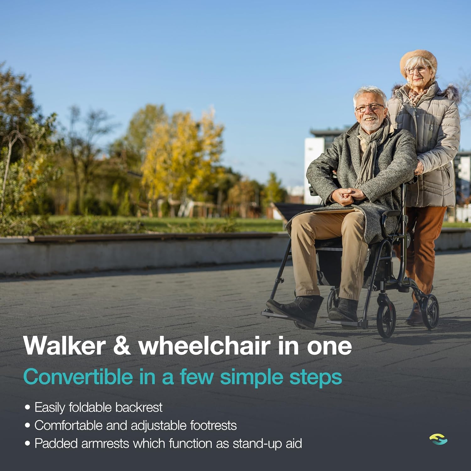 Helavo 2 in 1 Walker Wheelchair Combo – Foldable Aluminum Rollator with Footrests – Convertible to a Transport Chair, 300 lbs Load Capacity – Maximum Mobility in All Situations