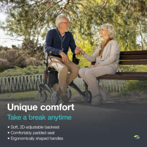 This is a superb Walker/Rollator. Smooth, good looking and lightweight. We can now feel comfortable taking this with us in the car.