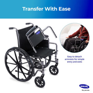 Invacare Essentials EX1 Manual Wheelchair, Folding Wheelchair w/Swing Away Footrest, L-Shaped Desk Length Arm, & Wheel Lock, 20” Width, 265 lb Weight Capacity, Fully Assembled