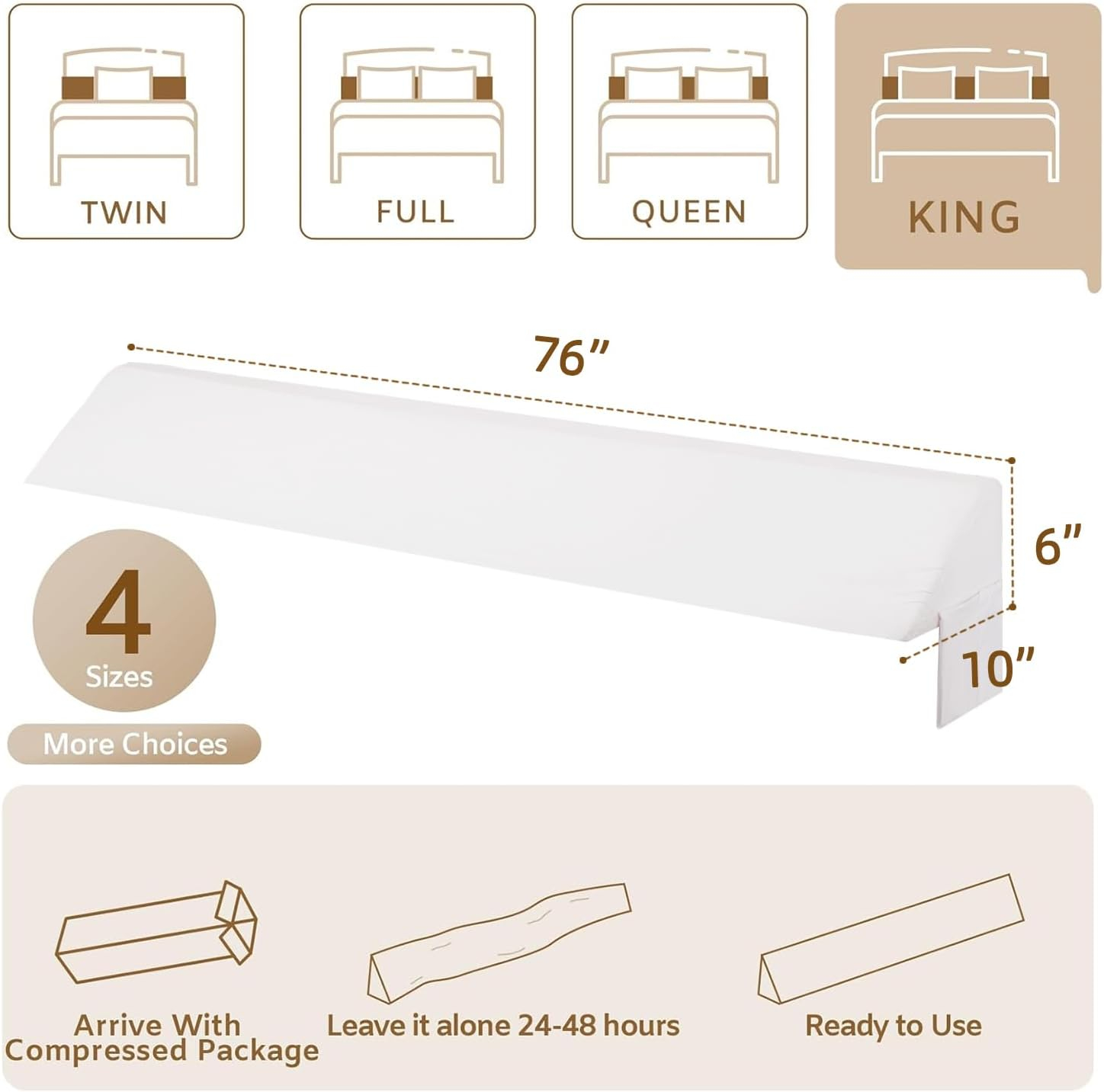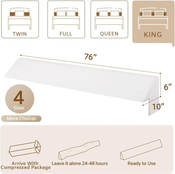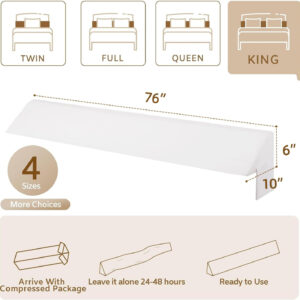 King Wedge Pillow Headboard (76″x10″x6″), Bed Wedge Pillow for Headboard, Foam Headboard Pillow, Bed Gap Filler King – Fill The Gap (0-7″), Mattress Gap Filler (White)