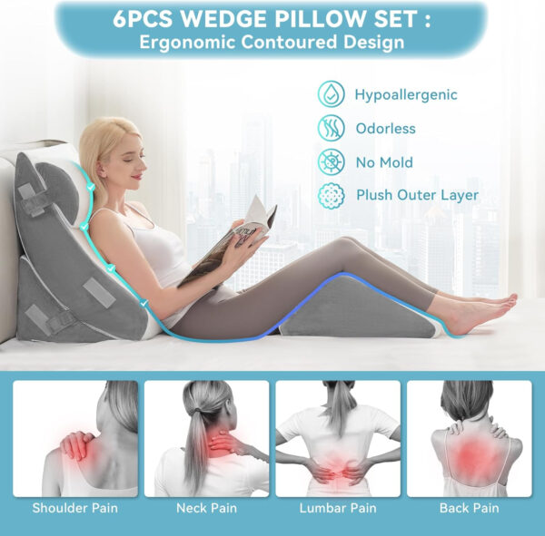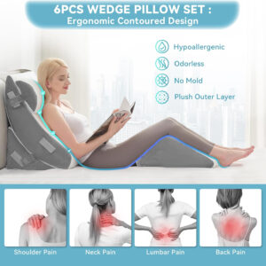 3 reviews for Kingfun 4pcs Orthopedic Bed Wedge Pillow Set for Post Surgery, Memory Foam for Sleeping, Adjustable Leg, Back and Arm Support, Sitting Up and Rest Pillow with Travel Bag