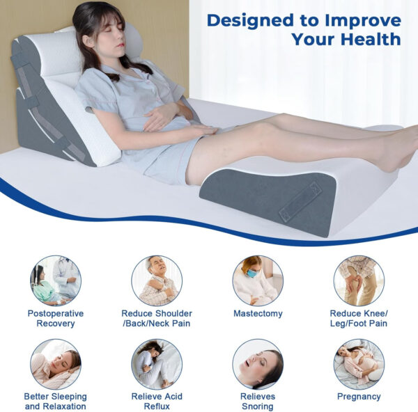 3 reviews for KingPavonini 4PCS Bed Wedge Pillow Post Surgery, Orthopaedic Sleeping Wedge Pillow Set for Neck, Back and Leg Pain Relief, Acid Reflux, GERD, Wedge Pillow for Sleep Apnea with Travel Bag