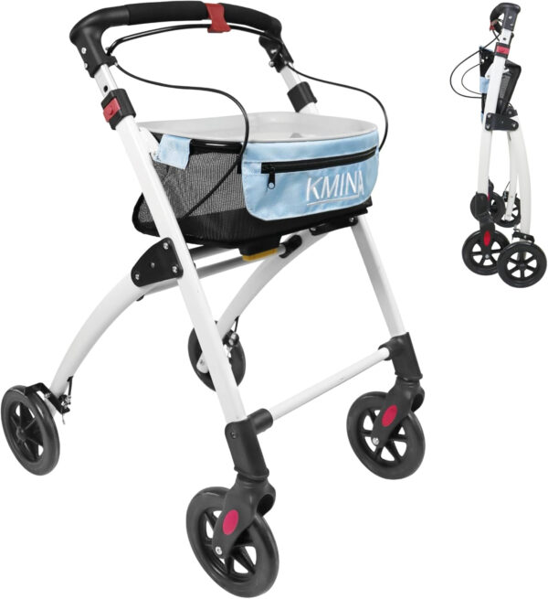 KMINA PRO – Narrow Walkers for Small Spaces, Folding Walker with Wheels and Brakes, Seniors, Blue