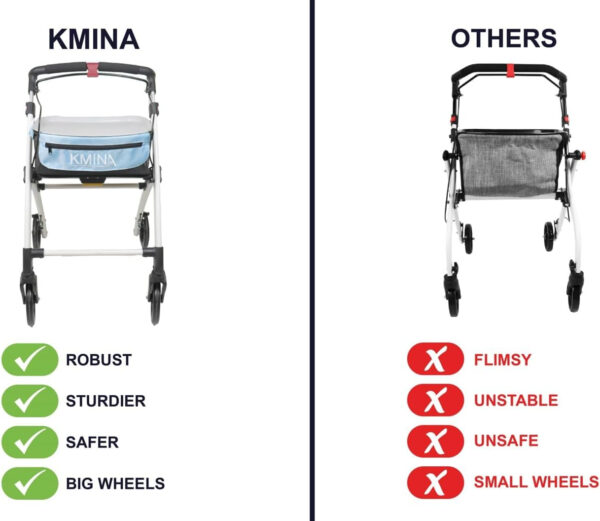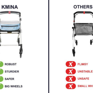 3 reviews for KMINA PRO – Narrow Walkers for Small Spaces, Folding Walker with Wheels and Brakes, Seniors, Blue