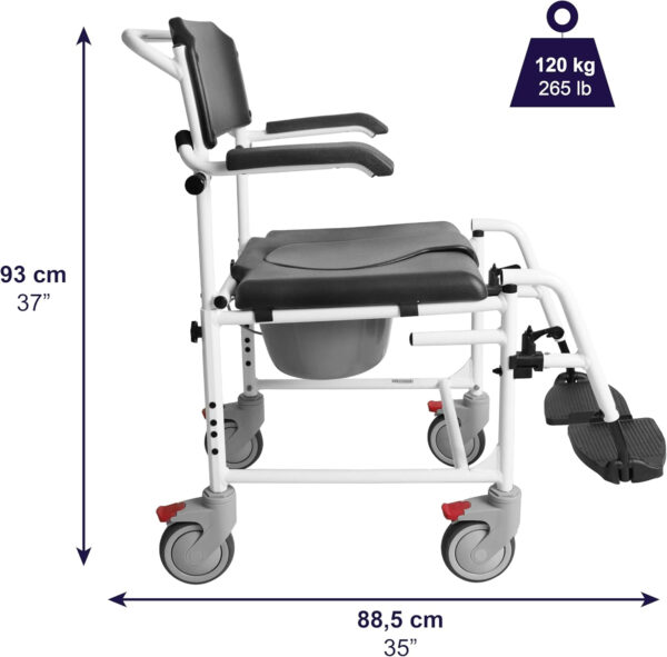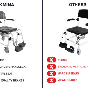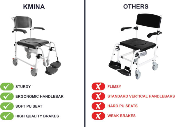 The KMINA PRO – Shower Chair is by far the best shower chair I have owned and meets my needs perfectly. Believe me, I should know. I have owned five shower chairs over the years. I feel very safe in this shower chair. It’s worth noting this chair meets European standards for shower chairs. I have had no issues with this chair and highly recommend it.