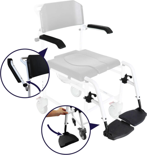 Husband had severe lisfranc fracture, NO weight bearing on foot for 15 weeks. We have a regular house, skinny bathroom/shower doors. We could go ANYWHERE in the house with this chair! Lightweight, rolled easily on extra plush carpet, turns on a dime. One good/bad thing about this chair- when you lock a wheel, it is LOCKED. It takes quite a bit of foot pressure to unlock, so make sure wheels are conveniently positioned for you to get your foot onto them. I didn’t, broke numerous finger nails until I got the hang of it. Used as a potty chair if I needed to run a quick errand, a great comfort for both of us. Highly recommend.