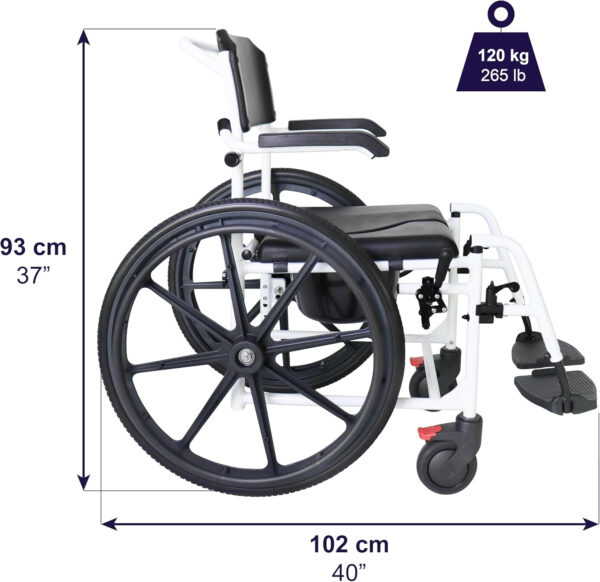 3 reviews for KMINA PRO – Shower Wheelchair, Adjustable Chair with Wheels for Disabled Adult, Self Propelled, Black