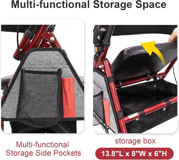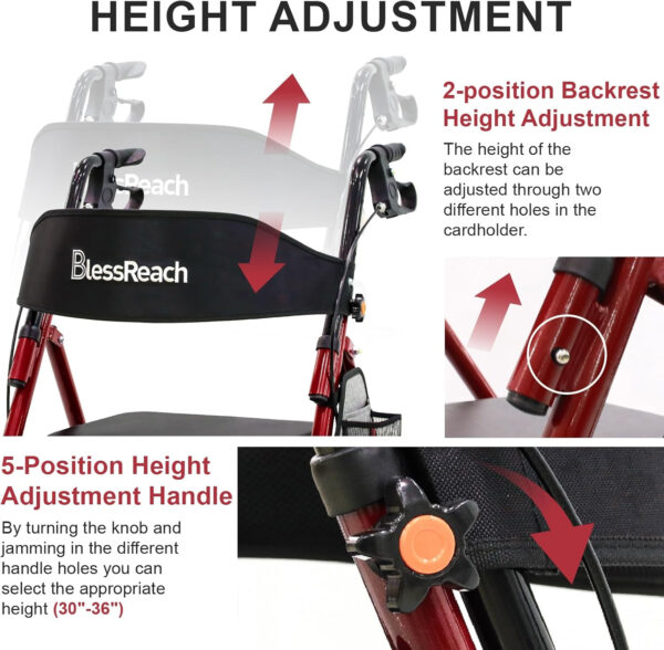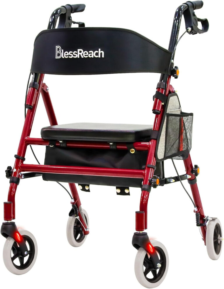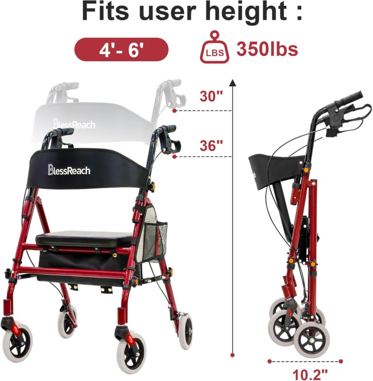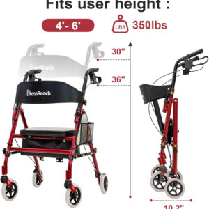 3 reviews for Lightweight Foldable Rollator Walkers with Seat for Seniors, 350 lb Capacity, 5-Position Adjustable Height, Premium Hybrid Rolling Walker – Aluminum and Carbon Steel (Red)