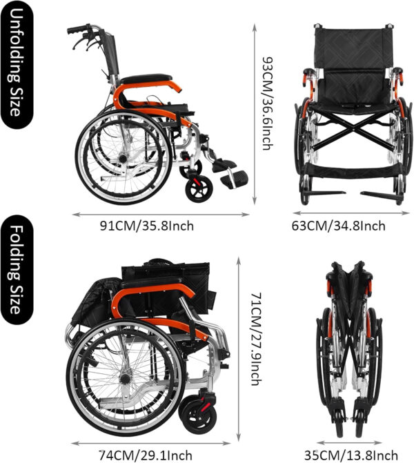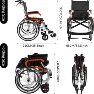 1 review for Lightweight Foldable Wheelchair,Transport Wheelchair with Handbrakes Self-Propelled for Seniors Adjustable Leg Rest & Footrest 220lbs Weight Capacity