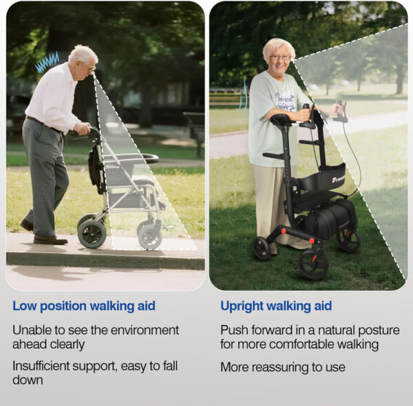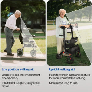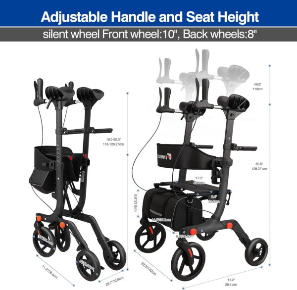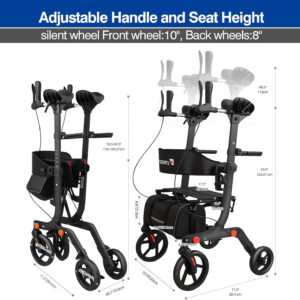 9 reviews for Lightweight Upright Rollator Walker All-Terrain Foldable with seat and Adjustable Height backrest, 300 lbs Capacity, 10″ Front & 8″ Rear Wheels for Seniors, Adults, bariatric, Includes Cane Holders