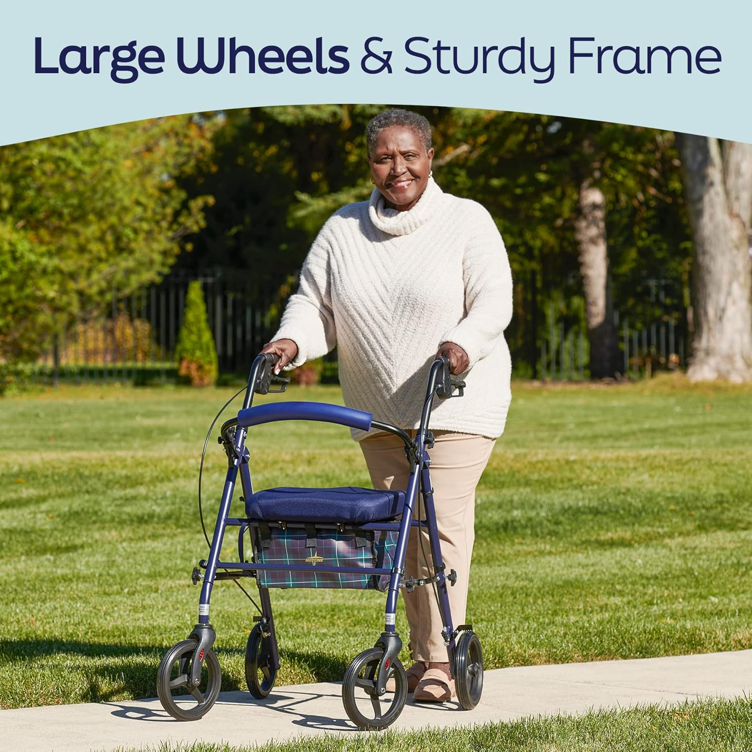 3 reviews for Medline Foldable Steel Rollator with Microban* Protection, 8″ Wheels, Comfortable Seat, 300 lbs, Weight Capacity, White