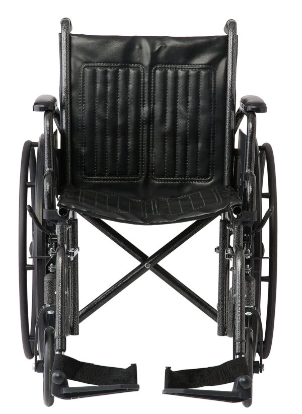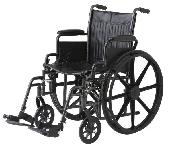 Medline K2 Basic wheelchair with 18″W seat, removeable desk-length arms and swing-away leg rests