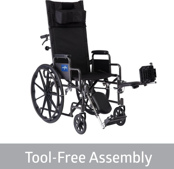Medline Reclining Wheelchair, Desk-Length Arms and Elevating Leg Rests, 16″ x 18″ Seat (W x D)