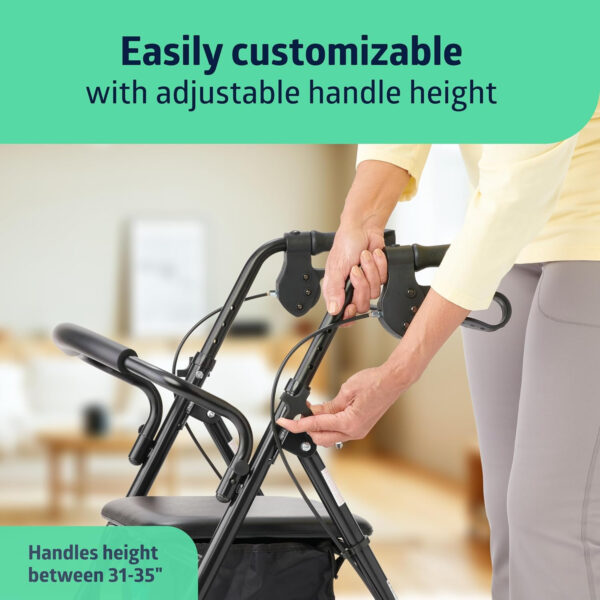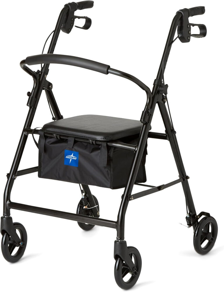 3 reviews for Medline Steel Rollator Walker for Adult Mobility Impairment, Black, 300 lb. Weight Capacity, 6” Wheels, Foldable, Adjustable Handles, Rolling Walker for Seniors