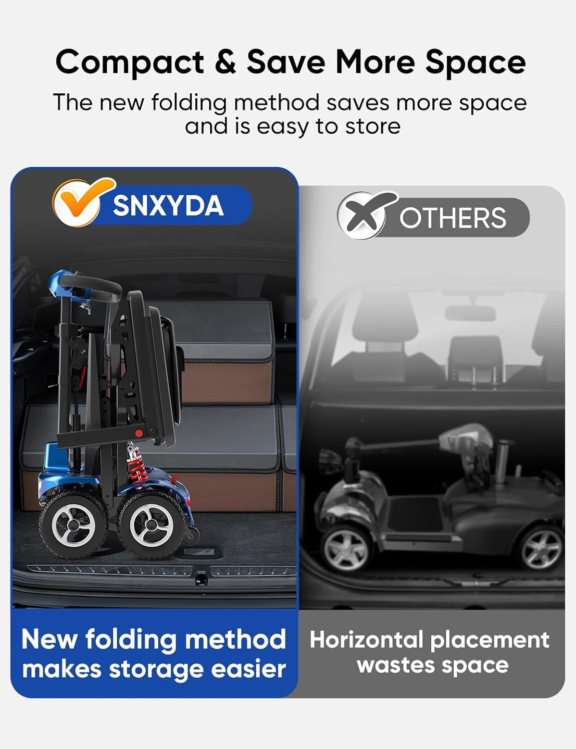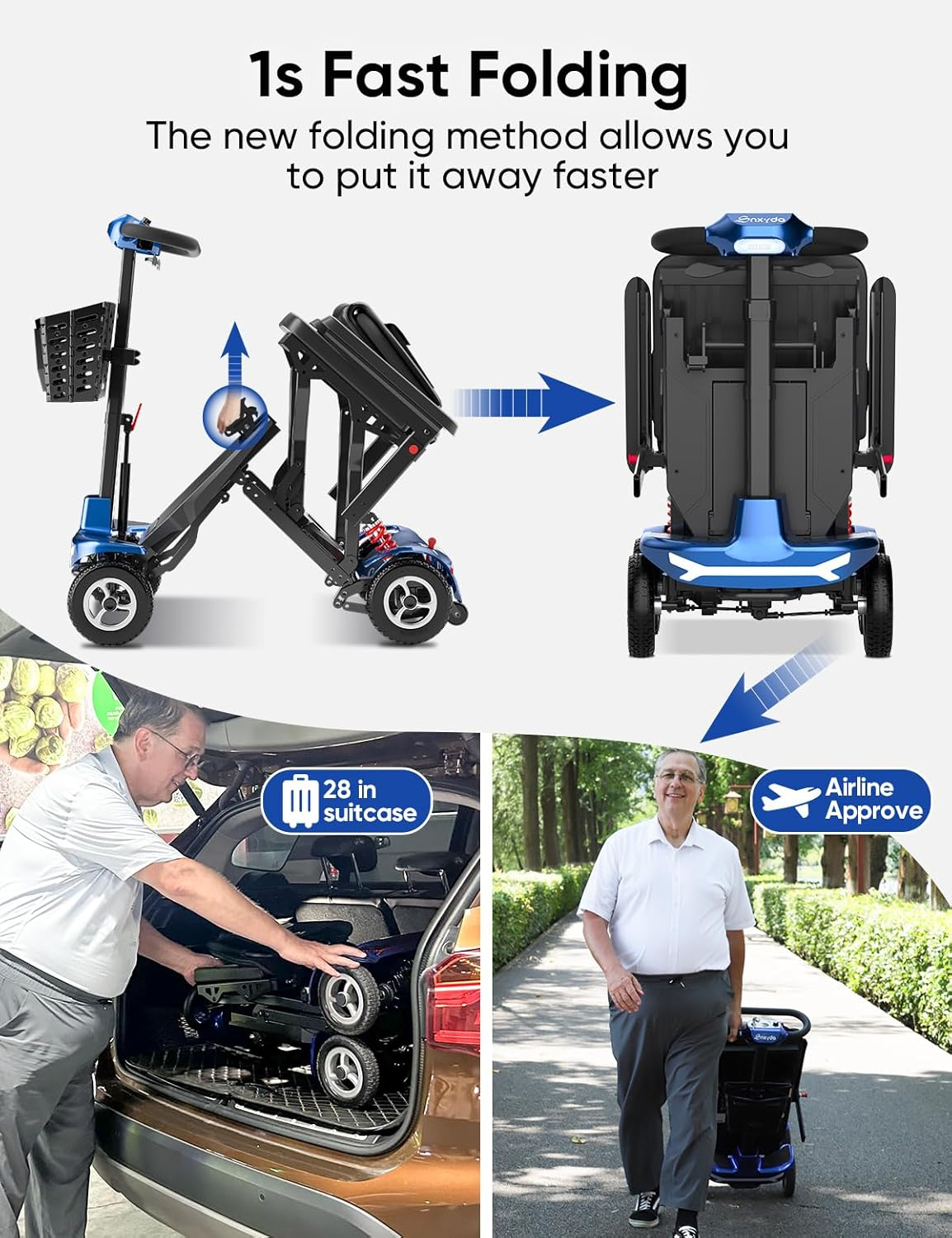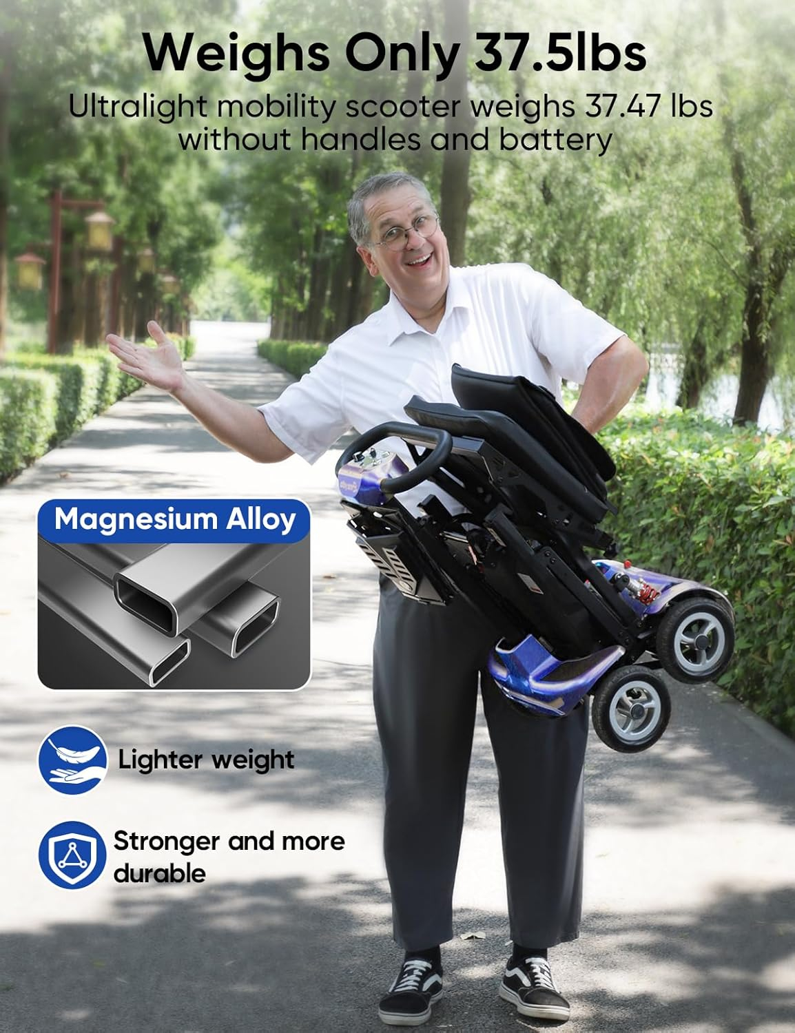 Mobility Scooter for Adults, Seniors – 37.5 lbs Ultra Lightweight Folding Mobility Scooters for Seniors Airport Approved, All Terrain 4 Wheel Motorized Scooter for Travel, 275 lbs Capacity, Blue