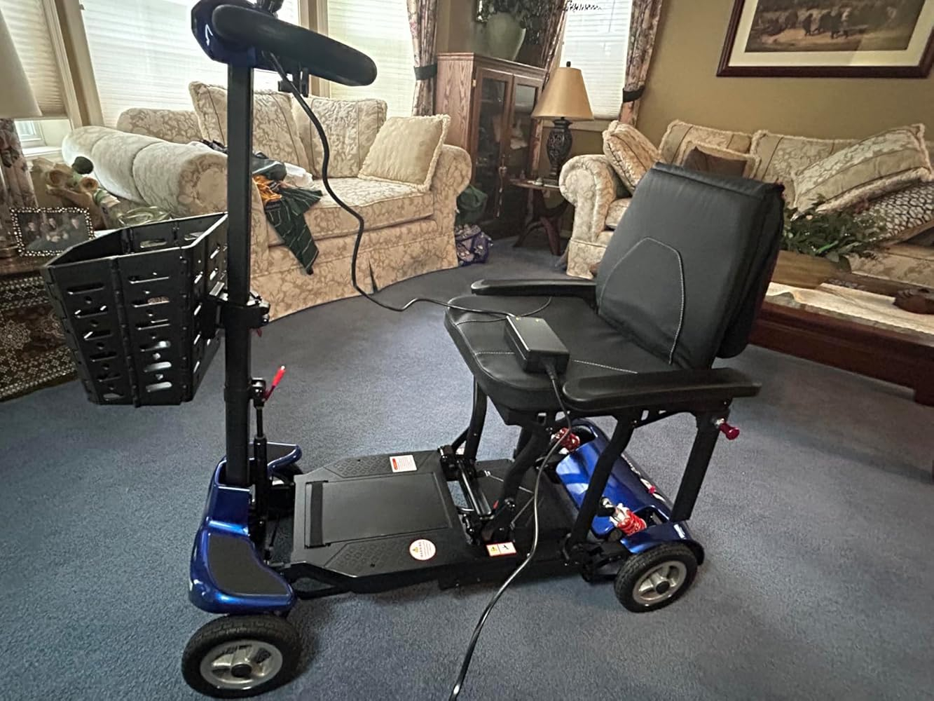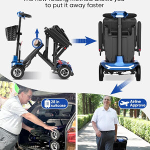 5 reviews for Mobility Scooter for Adults, Seniors – 37.5 lbs Ultra Lightweight Folding Mobility Scooters for Seniors Airport Approved, All Terrain 4 Wheel Motorized Scooter for Travel, 275 lbs Capacity, Blue
