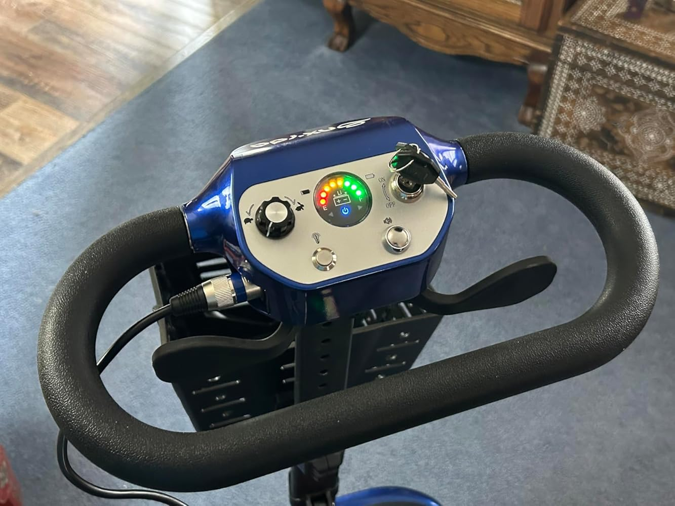 No scooter is perfect for all applications, but for travel, this checks the most boxes for us. We did a lot of research before purchasing and found this one to be best for our use in size, price, ease of folding, and most importantly for airline travel with its standard airline-approved battery. We appreciate that the tiller is adjustable in both height and angle (some others are not), and that the armrests height is easily adjustable as well. It appears to be well made and is sturdy enough for my wife to hang on to when boarding the scooter (unlike some others we tried). We like that the armrests and the seat remain on the scooter when folded (some others require seat removal), and that you can easily pull it behind you like you would a carry-on suitcase. It fits easily into the trunk of a car and is not too heavy to lift into and out of the trunk. It has a foldable small basket in the front and room under the seat, should you have packages with you. We are looking forward to our next airline trip and appreciate not having to rent a scooter once we arrive at our destination as we have in the past. I would suggest adding a nylon belt to wrap around the seat as to hold it in when using it for airline travel. I had one already and it works perfect for that without damaging the seat in any way. The battery is easily removable and can be charged on it off the scooter. It is small enough to remove and put in your carry-on bag for airline travel as well.