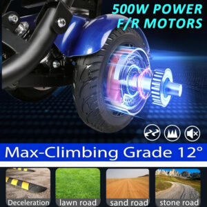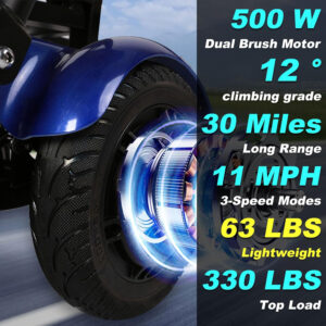 Pros: Love having the 3 speeds, and it goes up to 11 mph which makes this scooter twice as fast as the average 4 wheel scooter, but obviously the third speed may be too fast for some. This scooter has a 30 mile radius per charge, and it is powerful for going up hills. The throttle works like a motorcycle, where you use your whole hand, not just the thumb. The scooter easily folds in half making it very compact for loading in my compact’s trunk.Cons: The scooter arrived in poor condition, it took many hours of work to get everything adjusted properly. The wheels were way out of alignment, and it only turned to the right. It looks like these are assembled with essentially no quality control. Both front wheels were also bent, probably from poor shipping care from Federal Express, and the packaging could be batter. We tried to get seller Lelekuai to replace the damaged parts, but after week there was no response. I reported the seller to Galenus Medical but all they could do was to return the whole scooter for a refund and start over again.Verdict: Great performance for the money, but be prepared to do some work to make it work properly.