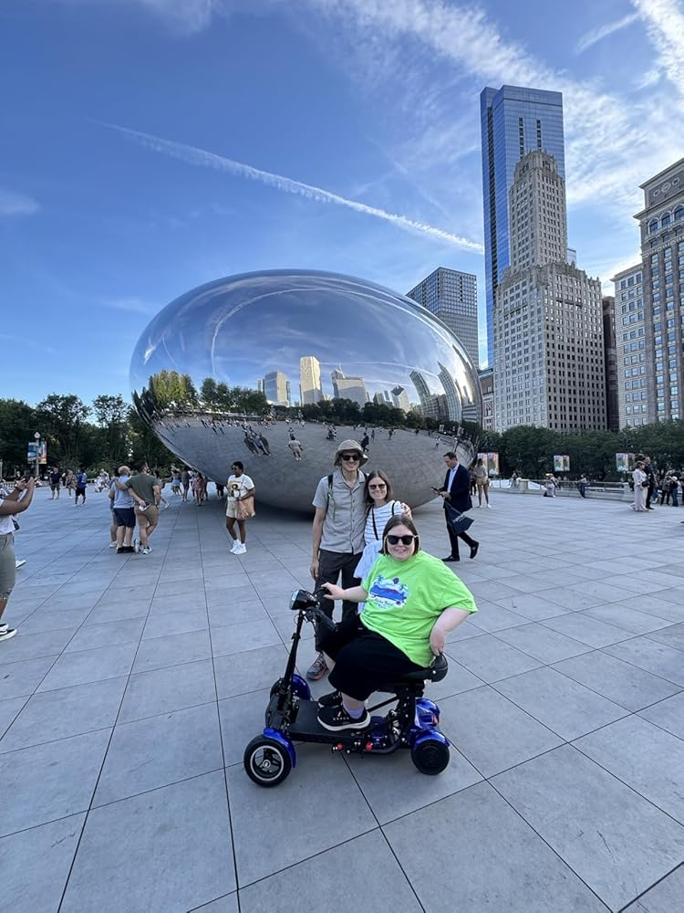 The scooter arrived with all of its parts included(there was none missing). The air in the tires were low, so we had to fill those. I first took this scooter around a block; the first problem, I had noticed was a light scraping noise. I think it only does it on tar roads where little rocks get up in its breaks. Minor problem mainly. I ran it 8 hours steady from Up North Minnesota, to Chicago, Illinois. I did a four day trip to Up North MN. There was long paths, and hills. It handled the hills really well surprisingly. But sometimes I had to use my break when going down hill because it wants to go on its own very quickly. I don’t find that to be a not a big problem, just need more practice with it. It can go on gravel well. Just don’t go in deep puddles with it, or when it rains. Luckily it didn’t rain when I was Up North. I could use it everyday😊. Don’t go off curves with it either, it would be a rather uncomfortable ride. The turn radius is fine with it, I just need more practice with it. Not that difficult to learn. It runs pretty smooth as far as stability. I mean, I ran it 8 hours steady each day, and it didn’t die. Just make sure you charge it the night before. It is a very heavy scooter. Don’t lift it with one person, you need two people. It does fit nicely in a car, or van.When I took it to Chicago for four days, it again ran very smoothly. I was able to run it all day without an issue. Then again; when you’re lifting it, remember two people. I took it downtown Chicago. I could keep up with my family. I was very happy with it. I even took to the Bean. The battery lasted. Even my family was like how come the battery isn’t going down. It has an amazing battery life. I love the blue color. I also took the scooter to Lincoln Park Zoo, and Adler Planetarium. There was tight spaces, and I yet could still get around with it😊. It did not rain either in Chicago. If had rained, I could not of used it.In the future, I plan on taking this scooter with me everywhere! It’s a lifesaver when your walker can’t handle hills. The battery only takes four hours to charge. It seems so quick! There are a few pics of the scooter next to the bean in Chicago. The other three are from Northern Minnesota where the scooter is sitting. The other one pic is of it sitting in the garage at home. I highly recommend. The only thing, I haven’t tried yet, is taking this scooter to the airport. I hope this scooter is airport friendly. If I ever do take this scooter to the airport, I will update my review with that experience. But all in all, I really love this scooter. It’s not really brand specific, but I still love it even though. Yes, I highly recommend this scooter. I am an disabled adult, and this scooter really helped me get around on my 2 trips!