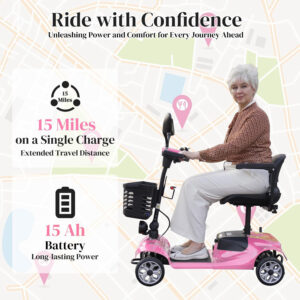 3 reviews for MS08 4-Wheel Mobility Scooter for Adults/Seniors, 15 Miles Range, 350W Motor, 360WH Battery, 330LBS Capacity, Rotating Seat, Cup Holder, Compact & Portable for Elderly