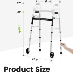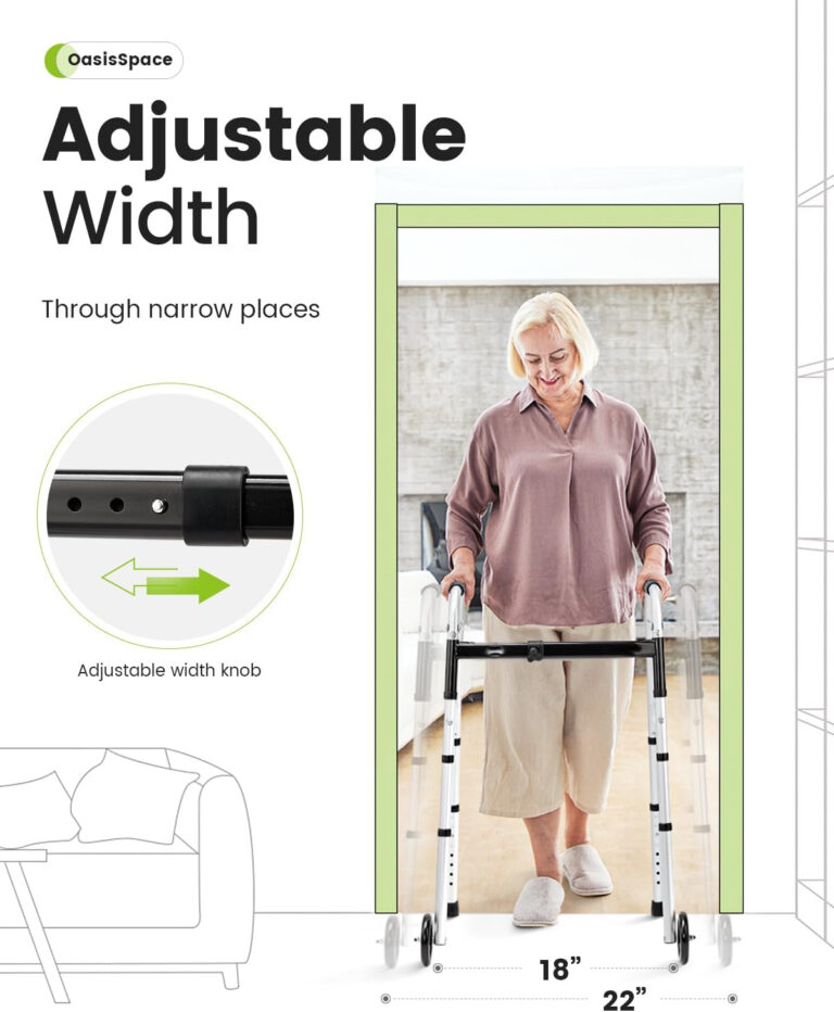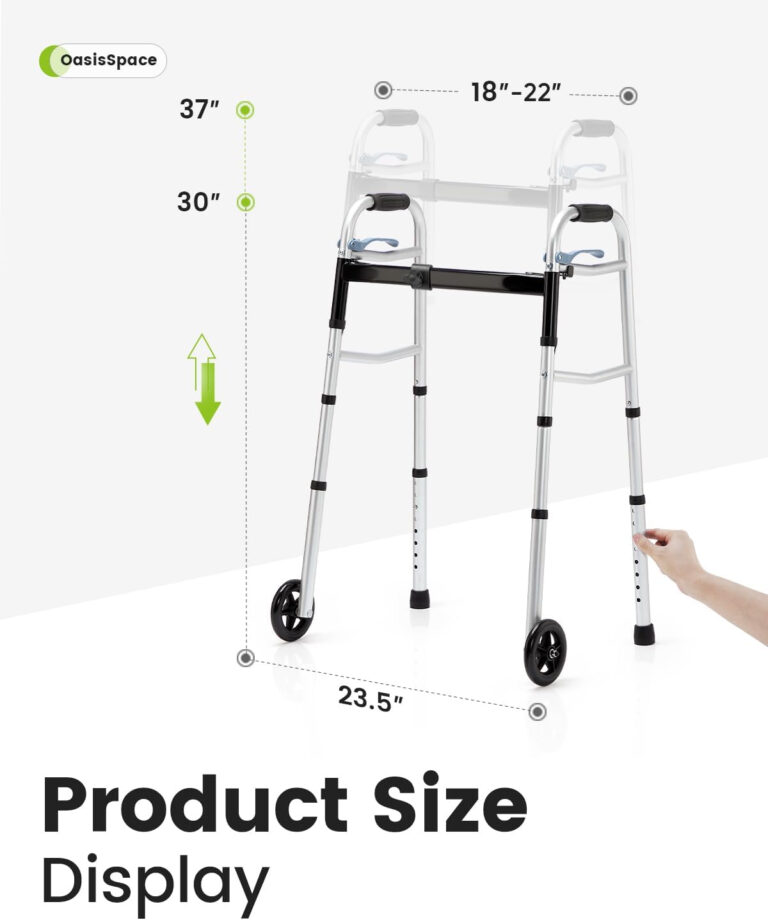 3 reviews for OasisSpace Compact Folding Walkers, Lightweight Walkers for Seniors Adults Elderly, Rolling Front Wheels Walker, Standard Walking Assist Narrow Walker for Small Spaces Up to 300lbs