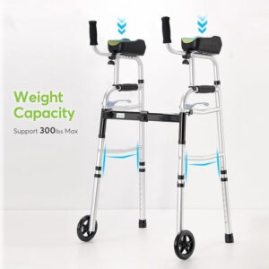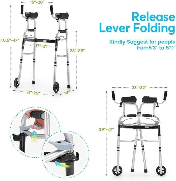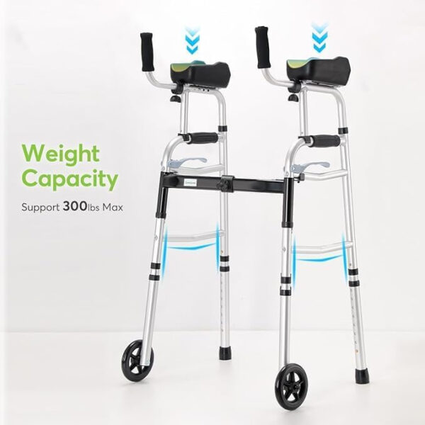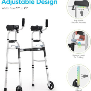 3 reviews for OasisSpace Folding Walker – Standard Walker with 5’’ Wheels, Removable Padded Armrests 300lbs, Platform Walker with Arm Support for Senior, Handicap & Disabled