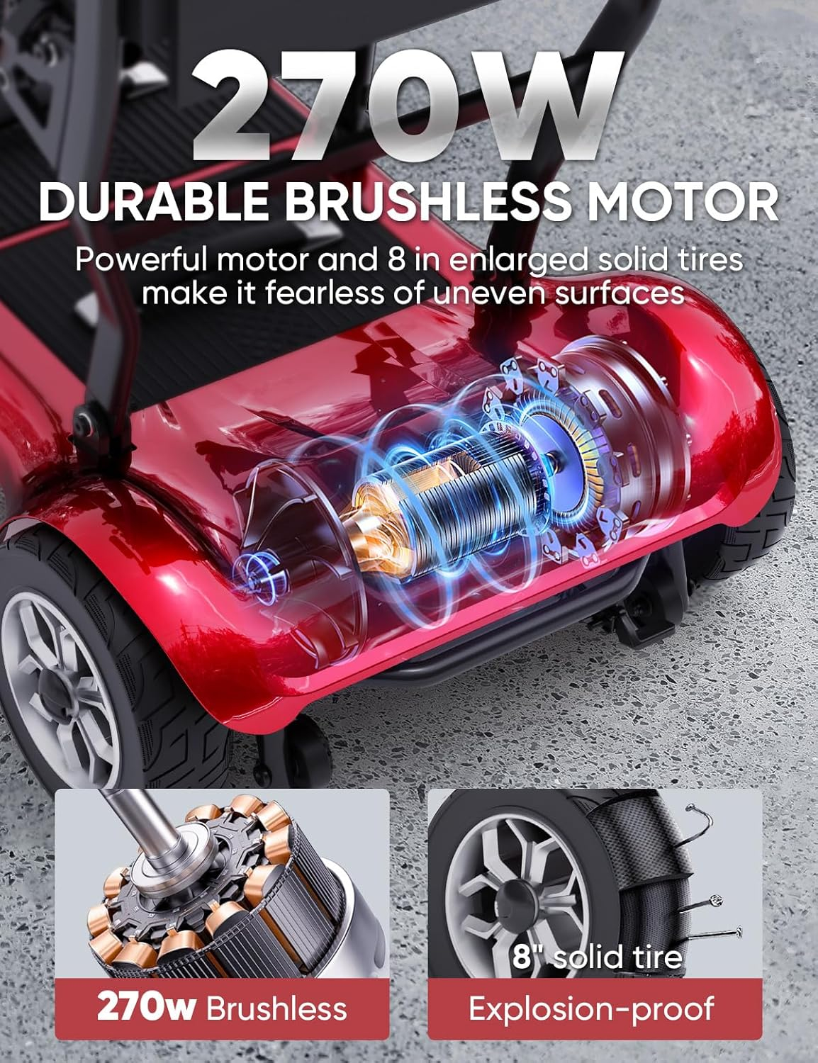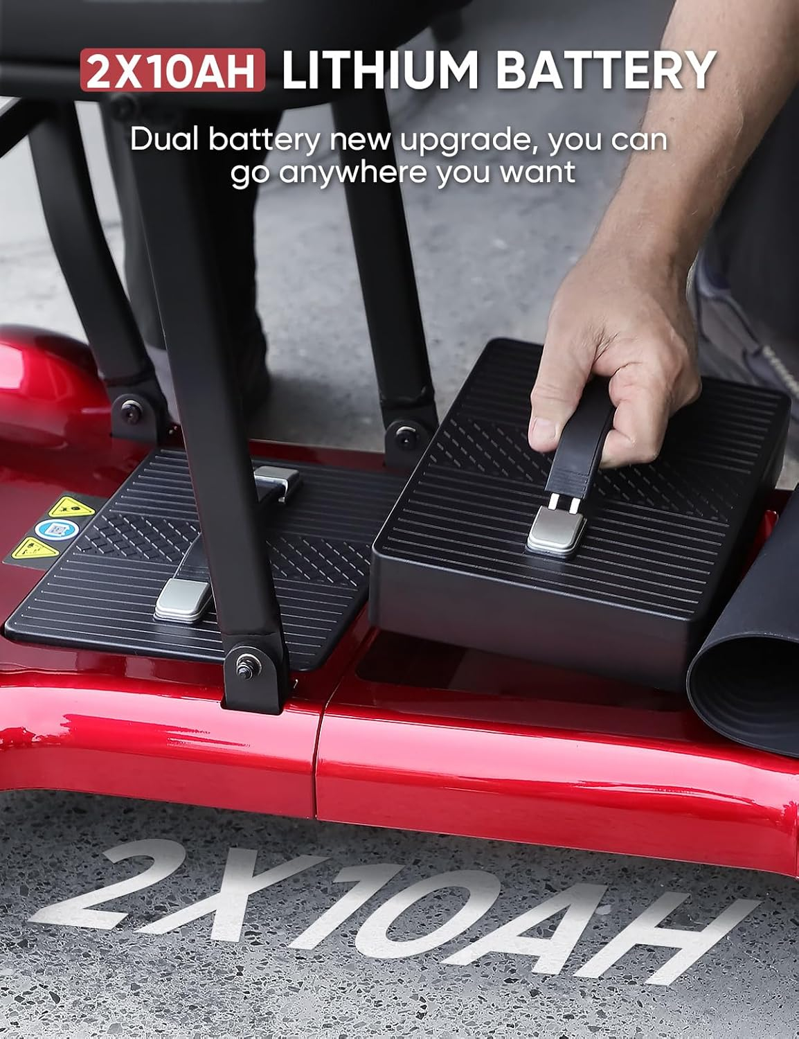 3 reviews for Powered Mobility Scooter for Adults, Seniors – 23MI Extra Long Range Foldable 4 Wheel Electric Motorized Scooter for Travels with Airport Approved Dual Batteries, All Terrain Motorized Scooter (Red)