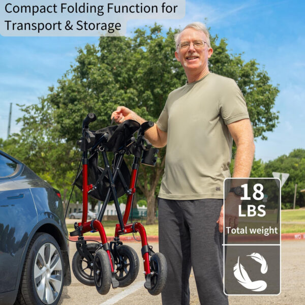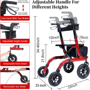 Rollator Walker for Seniors, Lightweight Foldable All Terrain Rolling Walker with seat, Aluminum Walkers with 10 inch Rubber Wheels, Handles and Backrest for Seniors and Adult