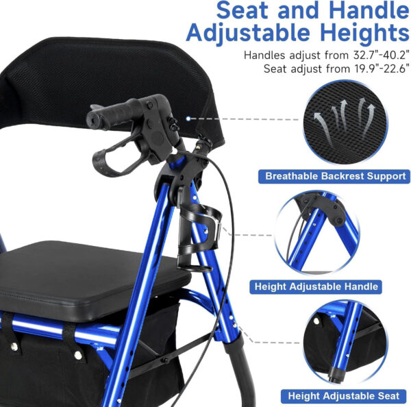 3 reviews for Rollator Walker with Seat and Brakes, 300 lbs Adults Bariatric Walker for Seniors with Extra Wide Backrest, Lightweight Folding Adjustable Height, All Terrain Rolling Walker 8 Inch 4 Wheels