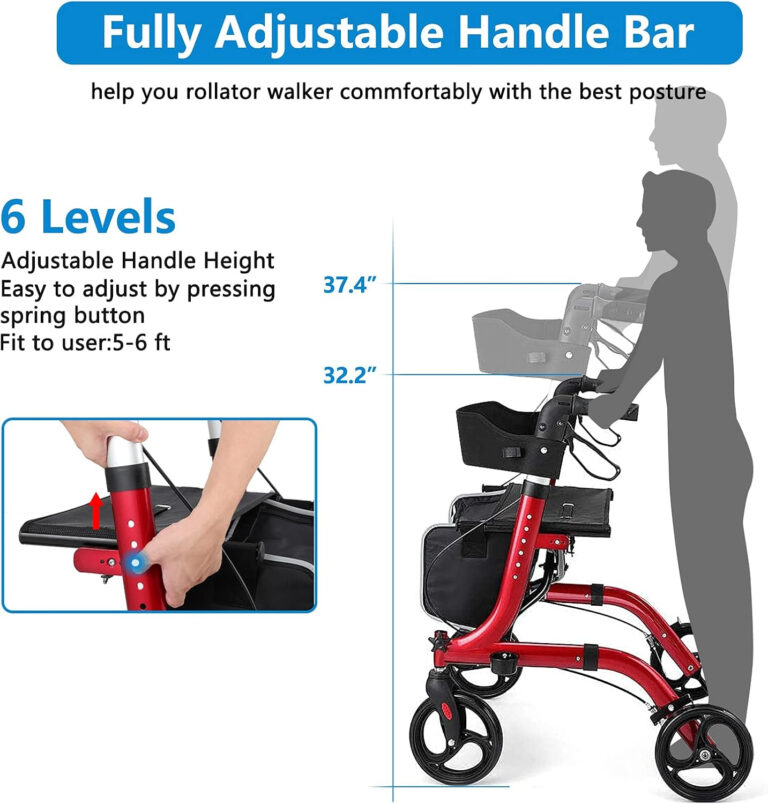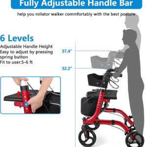 6 reviews for Rollator Walkers for Seniors-Folding Rollator Walker with Seat and Four 8-inch Wheels-Medical Rollator Walker with Comfort Handles and Thick Backrest-Lightweight Aluminium Frame Red