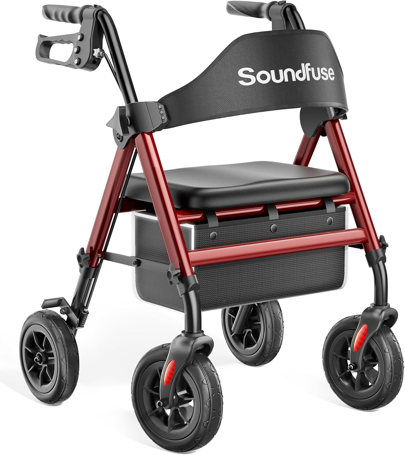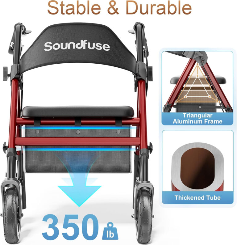 I am recovering from spinal cord injury and learning to walk, and a typical walker was not useful for sidewalks. I purchased this rollator to help navigate sidewalks and let me walk outside.This has been a fantastic purchase.Putting it together was extremely easy and done in less than 20 minutes. The four legs with wheels simply slide into the base unit, a screw goes in and a knob tightens at the desired height. Then slide in the handle bars and break and adjust similar knots. Finally screw in the back rest and it’s ready to go.I am very happy with it. The larger 8 inch wheels allow sidewalk, pavement, and road access.So far it has been very sturdy and I’ve had no issues or concerns.